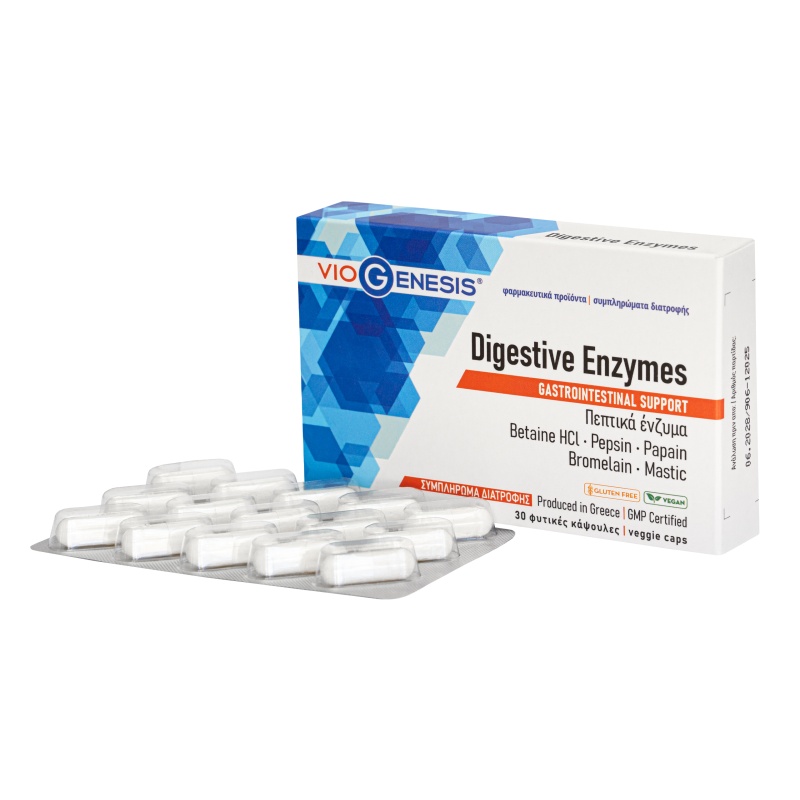 VioGenesis Digestive Enzymes Συμπλήρωμα Διατροφής με Πεπτικά Ένζυμα, 30 φυτικές κάψουλες
