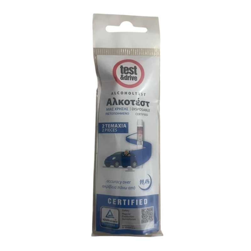 Test & Drive Πιστοποιημένο Αλκοτέστ Μιας Χρήσης, 2τμχ