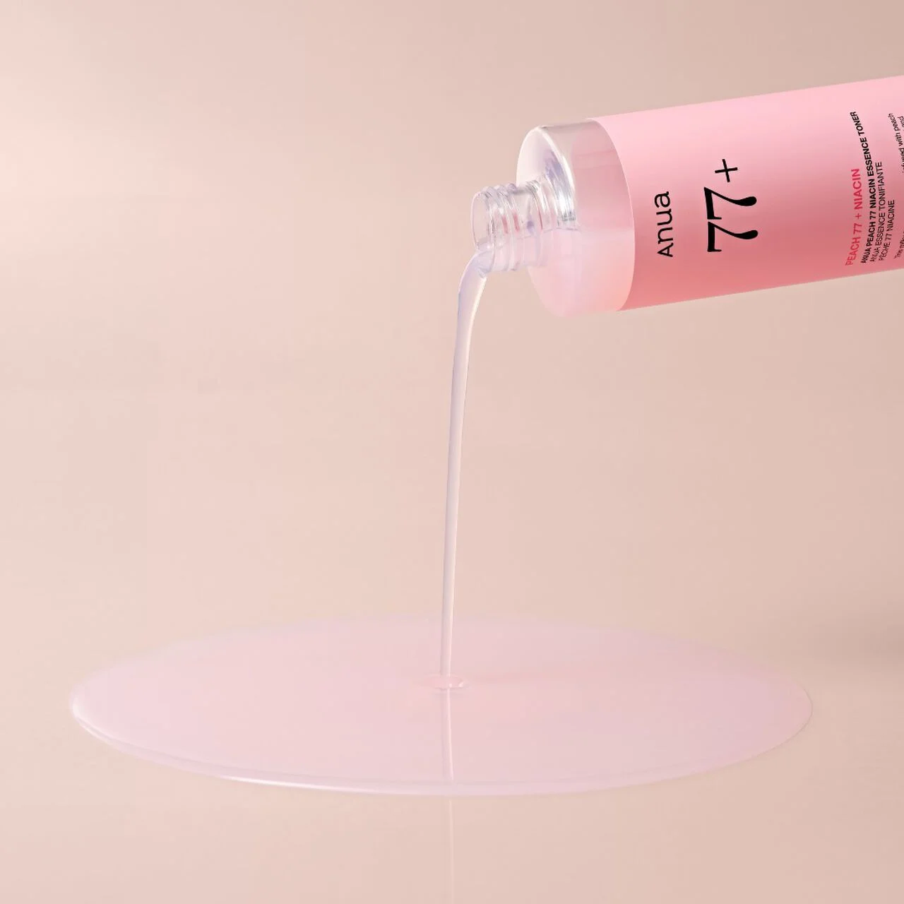 Το Anua Peach 77% Niacin Essence Toner είναι ένα ενυδατικό essence toner που φωτίζει το δέρμα, εξομαλύνει τον τόνο, λειαίνει την επιφάνεια του δέρματος και λειτουργεί τέλεια κάτω από το μακιγιάζ για λαμπερό glass skin αποτέλεσμα που διαρκεί.