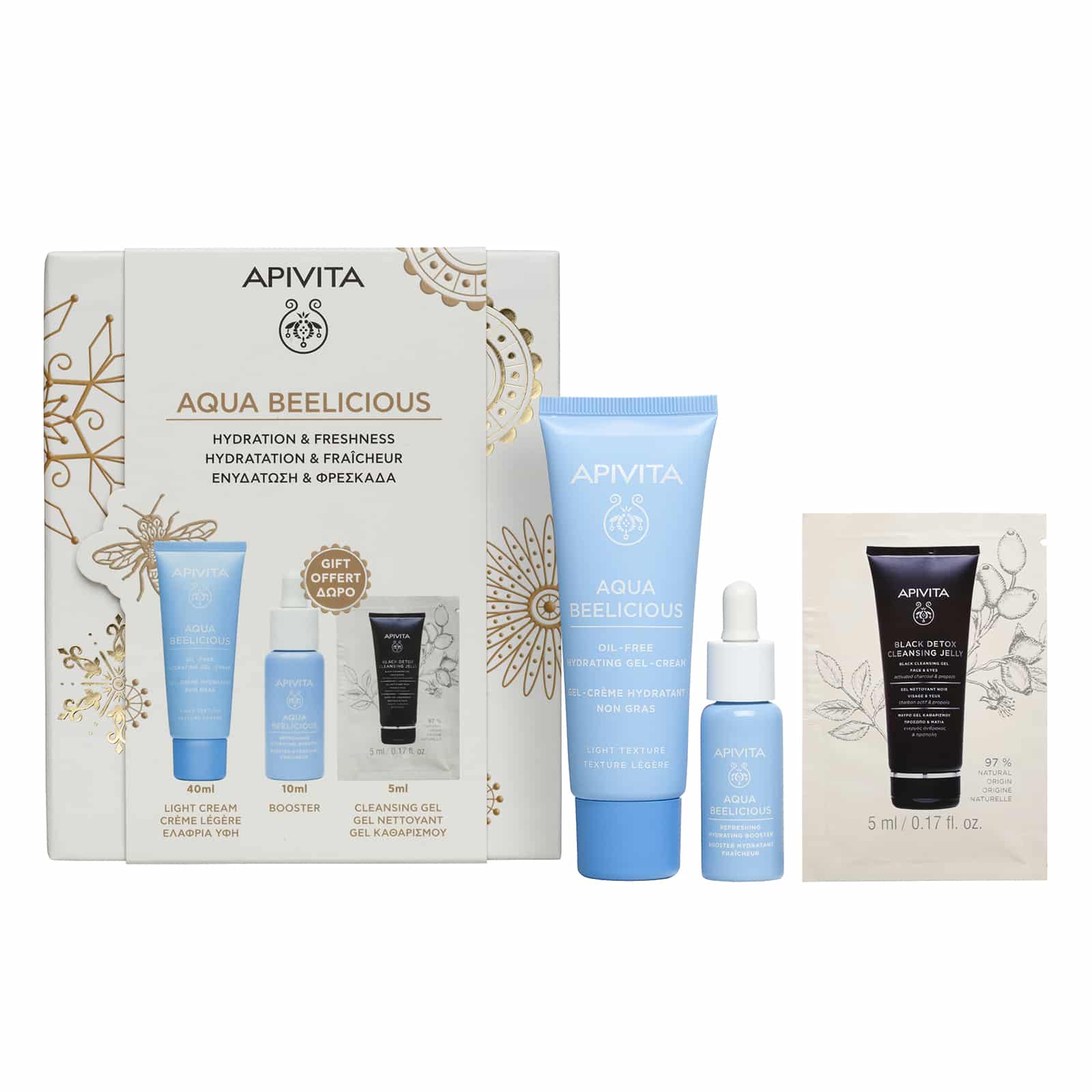 Apivita Aqua Beelicious Promo Ενυδατική Κρέμα-Gel Ελαφριάς Υφής 40ml & Δώρο Booster 10ml & Gel Καθαρισμού για Πρόσωπου & Μάτια, 5ml, 1σετ
