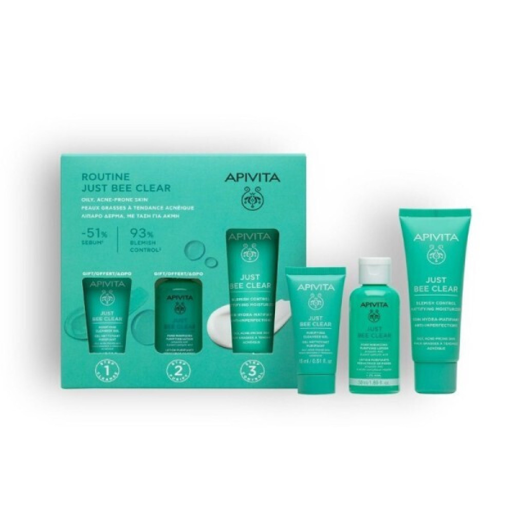 Apivita Promo Just Bee Clear Κρέμα κατά των Ατελειών, 40ml & Δώρο Λοσιόν Σύσφιξης Πόρων, 50ml & Gel Καθαρισμού Προσώπου, 15ml, 1σετ