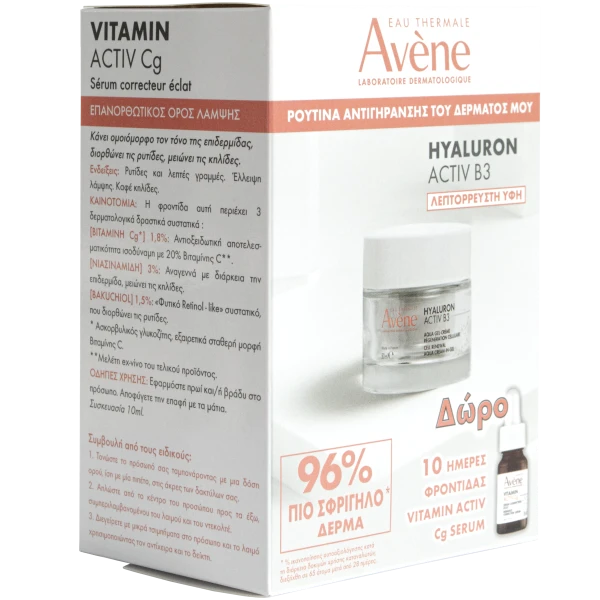 Avene Promo Hyaluron ActivB3 Aqua Gel-Creme, 50ml & Δώρο Vitamin Activ Cg Serum, 10ml