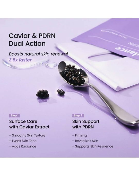 - Διπλή Δράση Χαβιαριού & PDRN: Ένας ισχυρός συνδυασμός εκχυλίσματος χαβιαριού και PDRN αναζωογονεί το δέρμα και ενισχύει τον δερματικό φραγμό.