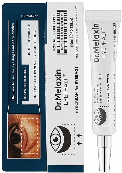 Η Dr. Melaxin Eyephalt Eyebag Cream είναι μια κρέμα ματιών που στοχεύει στη λείανση των ρυτίδων, παρέχοντας αποτέλεσμα lifting καθώς ανορθώνει το βλέμμα και συσφίγγει την περιοχή. Παράλληλα οι παράγοντες φωτεινότητας που περιέχει, εξομαλύνουν την όψη των μαύρων κύκλων και η αδενοσίνη παρέχει αντιγηραντική δράση.