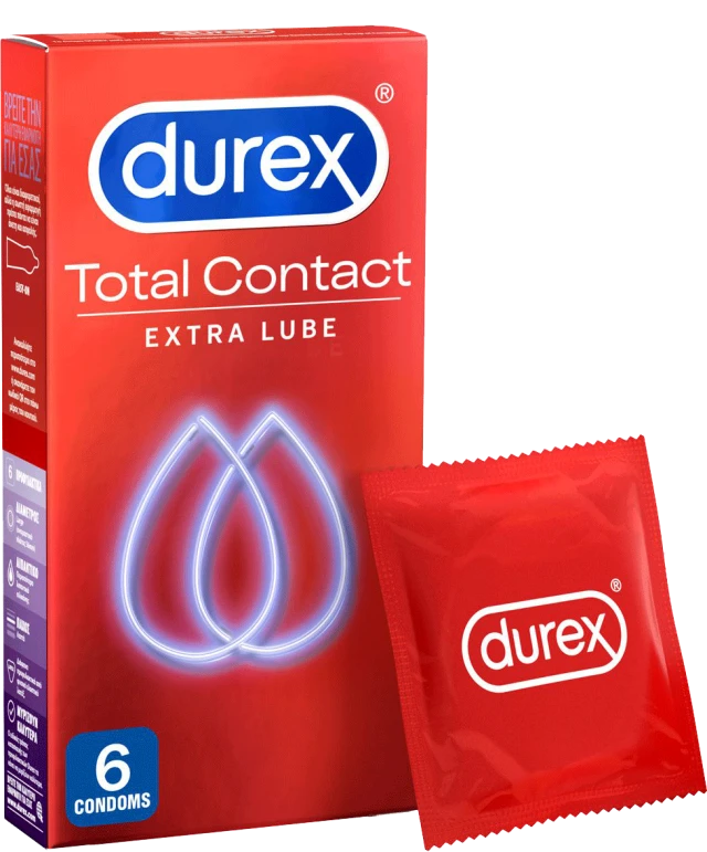 Τα προφυλακτικά Durex Total Contact με έξτρα λιπαντικό είναι λεπτά με επιπλέον λίπανση για καλύτερη αίσθηση. Εάν δεν σας τρελαίνει η ιδέα των παχύτερων προφυλακτικών, δοκιμάστε τα και θα βιώσετε κάτι πολύ διαφορετικό. Παρά την αυξανόμενη ευαισθησία κατά τη διάρκεια του σεξ, παρέχουν το ίδιο επίπεδο αξιοπιστίας που θα περιμένατε από οποιοδήποτε προφυλακτικό Durex. Ακόμα καλύτερα, διαθέτουν επίσης επιπλέον λίπανση για καλύτερη αίσθηση για εσάς και τον/την σύντροφό σας. Είναι 100% ηλεκτρονικά ελεγμένα με 5 επιπλέον ελέγχους ποιότητας που διεξάγονται σε κάθε παρτίδα. Επίσης είναι δερματολογικά ελεγμένα. Μεγάλη διάμετρος Large (oνομαστικό πλάτος: 56mm).