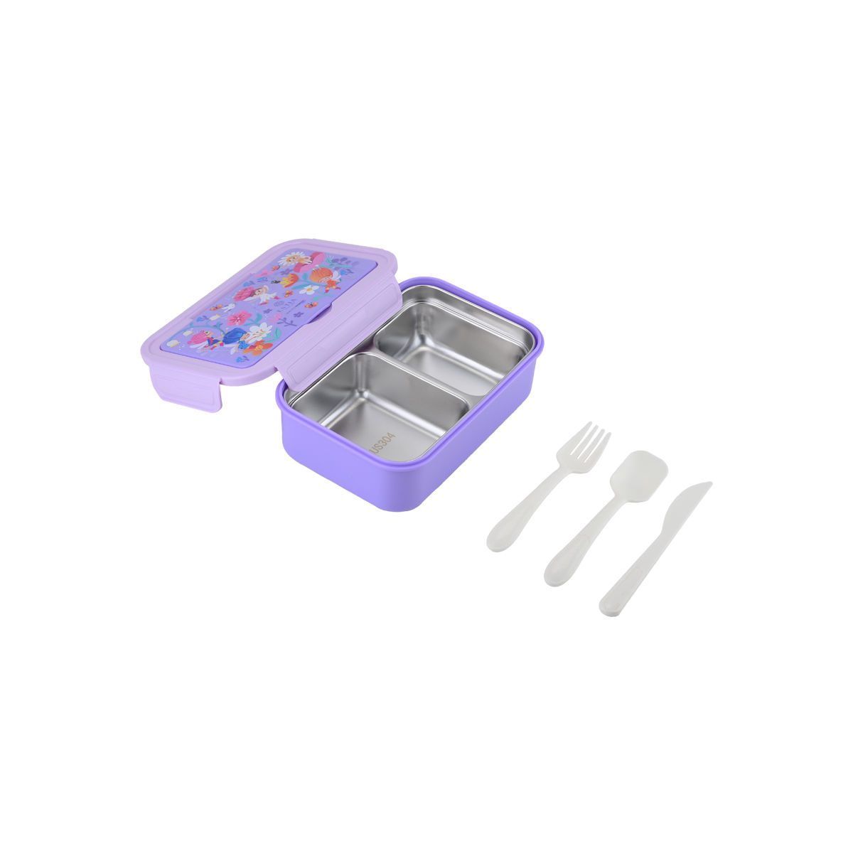 Διαθέτει 2 χωρίσματα για να τοποθετείτε τα φαγητά του μικρού σας χωρίς να ανακατεύονται μεταξύ τους καθώς και κουτάλι, πιρούνι και μαχαίρι.