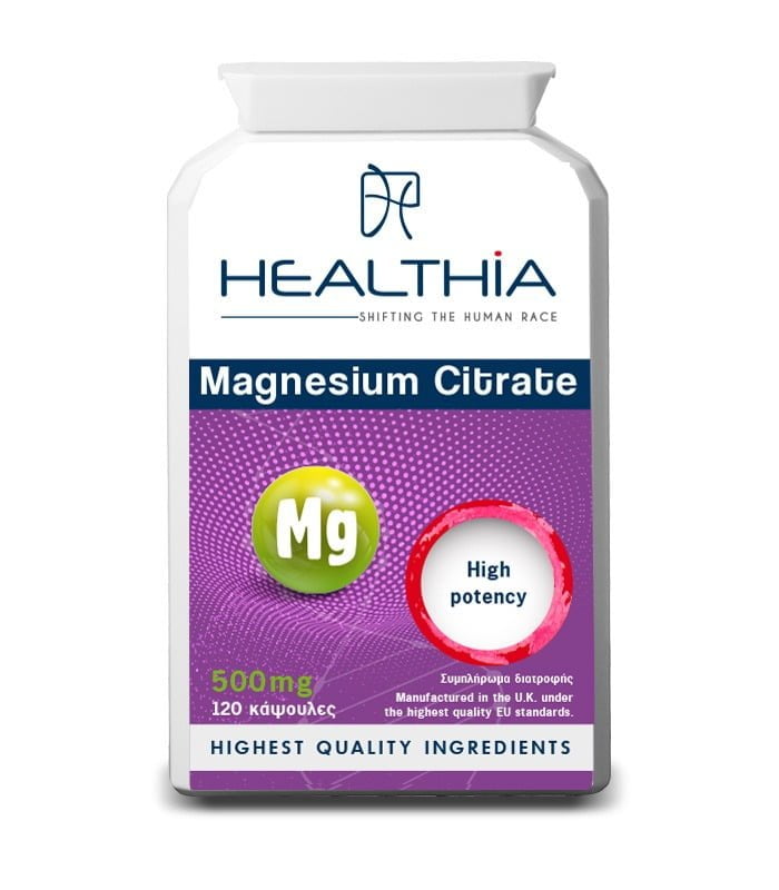 Παράλληλα με μια διατροφή πλούσια σε σκουρο-πράσινα φυλλώδη λαχανικά και ξηρούς καρπούς, το Magnesium Citrate της Healthia θα σας βοηθήσει αποτελεσματικά ώστε να λάβετε την απαραίτητη ποσότητα μαγνησίου που χρειάζεται ο οργανισμός σας σε ημερήσια βάση.