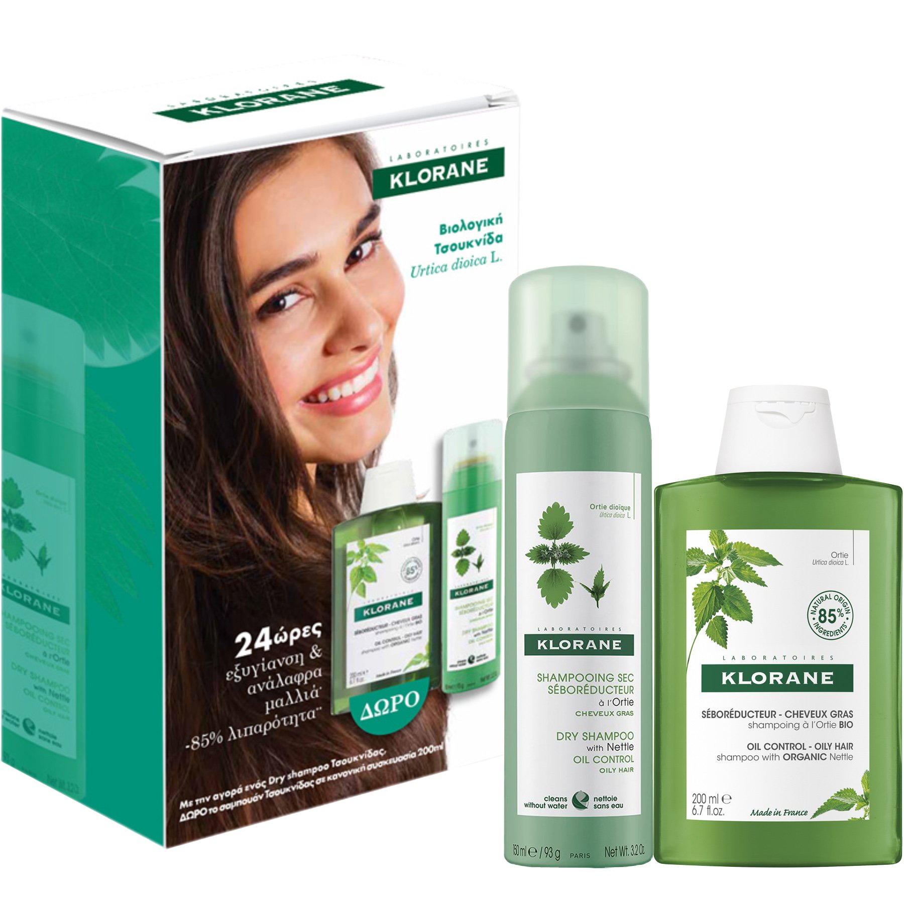 Klorane Promo Ξηρό Σαμπουάν με Τσουκνίδα, 150ml & Δώρο Σαμπουάν με Τσουκνίδα, 200ml