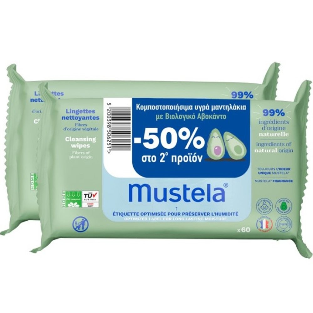 Mustela Promo Baby Cleansing Wipes Μωρομάντηλα, 2×60 τμχ (-50% στο 2 Προϊόν)