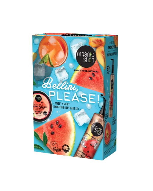 Organic Shop Bellini Please! Sweet & Juicy Duo Hydrating Shower Gel Αφρόλουτρο, 280ml & Body Scrub, 100ml