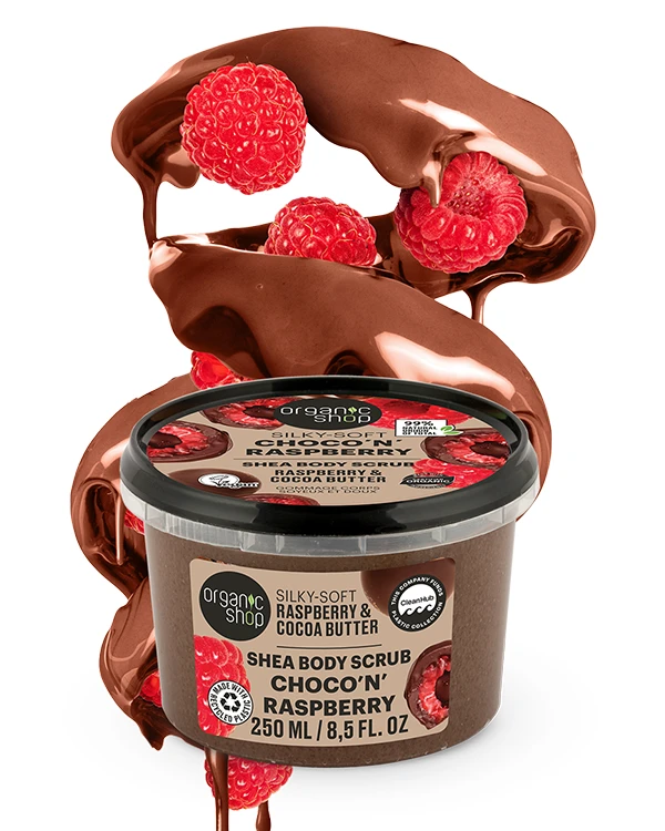 Organic Shop Shea Body Scrub Choco’n’Raspberry με Βατόμουρο & Βούτυρο Κακάο, 250ml