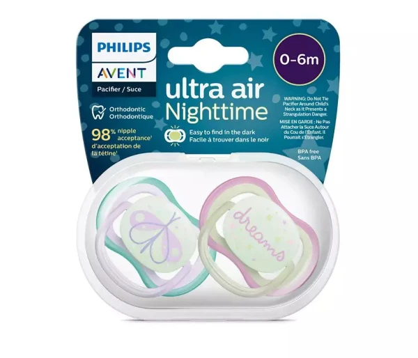 Philips Avent Πιπίλα Ultra Air Νυκτός 0-6 Μηνών, 2τμχ