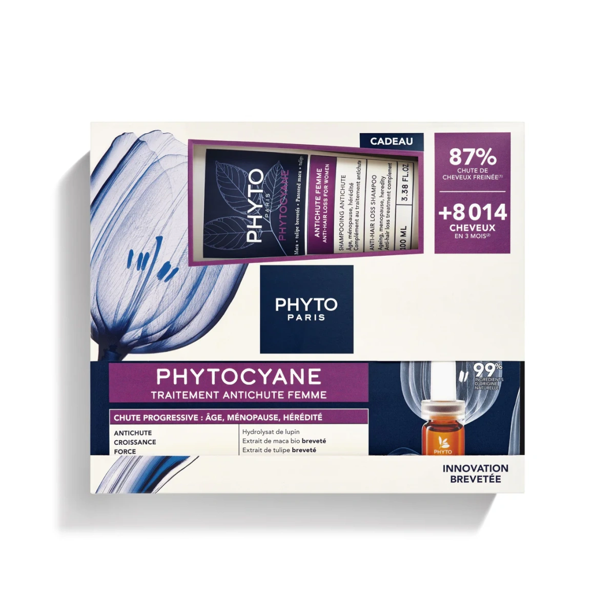 Phyto PHYTOCYANE Promo Women Progressive Anti Hair Loss – Αγωγή Κατά της Προοδευτικής Τριχόπτωσης για Γυναίκες 12 Αμπούλες x 5ml & Δώρο Σαμπουάν Κατά της Τριχόπτωσης 100ml, 1 Σετ