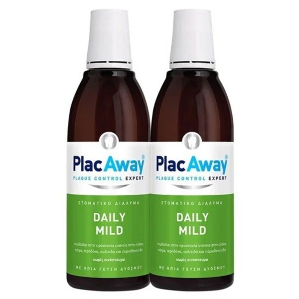 Plac Away Daily Mild Στοματικό Διάλυμα με Ήπια Γεύση, 2x500ml