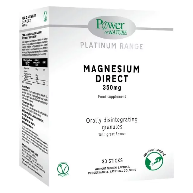 Το Magnesium Direct συνδυάζει 2 διαφορετικά είδη μαγνησίου σε υψηλή περιεκτικότητα το οποίο σε συνδυασμό με τη βιταμίνη Β6 συμβάλλουν στη φυσιολογική λειτουργία των μεταβολικών διεργασιών που αποσκοπούν στην παραγωγή ενέργειας, καθώς και στη φυσιολογική λειτουργία του νευρικού συστήματος. Το μαγνήσιο συμβάλλει στη μείωση της κούρασης και της κόπωσης, στην ισορροπία των ηλεκτρολυτών, στη φυσιολογική λειτουργία των μυών και στη φυσιολογική ψυχολογική λειτουργία. Η βιταμίνη Β6 συμβάλλει στο φυσιολογικό μεταβολισμό των πρωτεϊνών και του γλυκογόνου, καθώς και στη ρύθμιση της ορμονικής δραστηριότητας*.