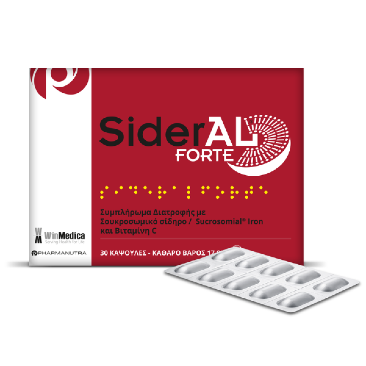 Το SiderAL® Forte ανήκει στα προϊόντα της οικογένειας SiderAL® και αποτελεί μία σημαντική εξέλιξη στην αντιμετώπιση της έλλειψης σιδήρου γιατί χρησιμοποιεί τη σουκροσωμικη τεχνολογία, μία βραβευμένη και καινοτόμα τεχνολογία, για τη μεταφορά και απόδοση του σιδήρου στον οργανισμό.