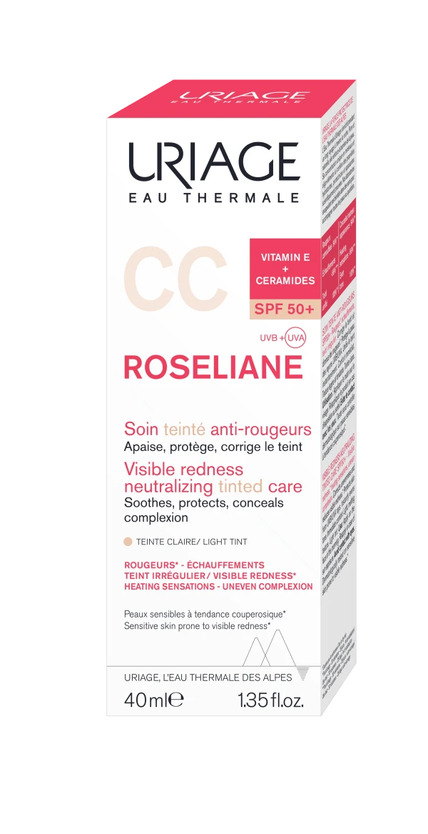 Αποκλειστικά για το ευαίσθητο δέρμα με τάση για ερυθρότητά, η Roséliane CC CREAM είναι η 1η κρέμα η οποία συνδυάζει πολύ υψηλή προστασία και makeup κάλυψη. Καλύπτει την ερυθρότητα, χαρίζει ομοιόμορφο δερματικό τόνο, προσθέτει λάμψη στην επιδερμίδα ενώ ταυτόχρονα προσφέρει πολύ υψηλή προστασία ενάντια στις ακτίνες UVA & UVB. Εμπλουτισμένο με ένα αποκλειστικό συνδυασμό από πατενταρισμένα ενεργά συστατικά, ενυδατώνει και προσφέρει μακράς διάρκειας καταπραϋντική δράση ενάντια στην αίσθηση καύσου αποκαθιστώντας τον επιδερμικό φραγμό και προστατεύοντας το δέρμα από εξωτερικές επιθέσεις