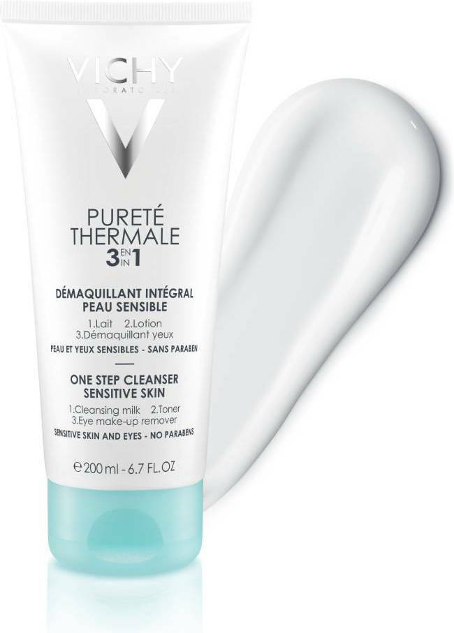 Το Ντεμακιγιάζ 3 σε 1 PURETÉ THERMALE συνδυάζει γαλάκτωμα καθαρισμού+ τονωτική λοσιόν + ντεμακιγιάζ ματιών σε ένα μόνο προϊόν.
