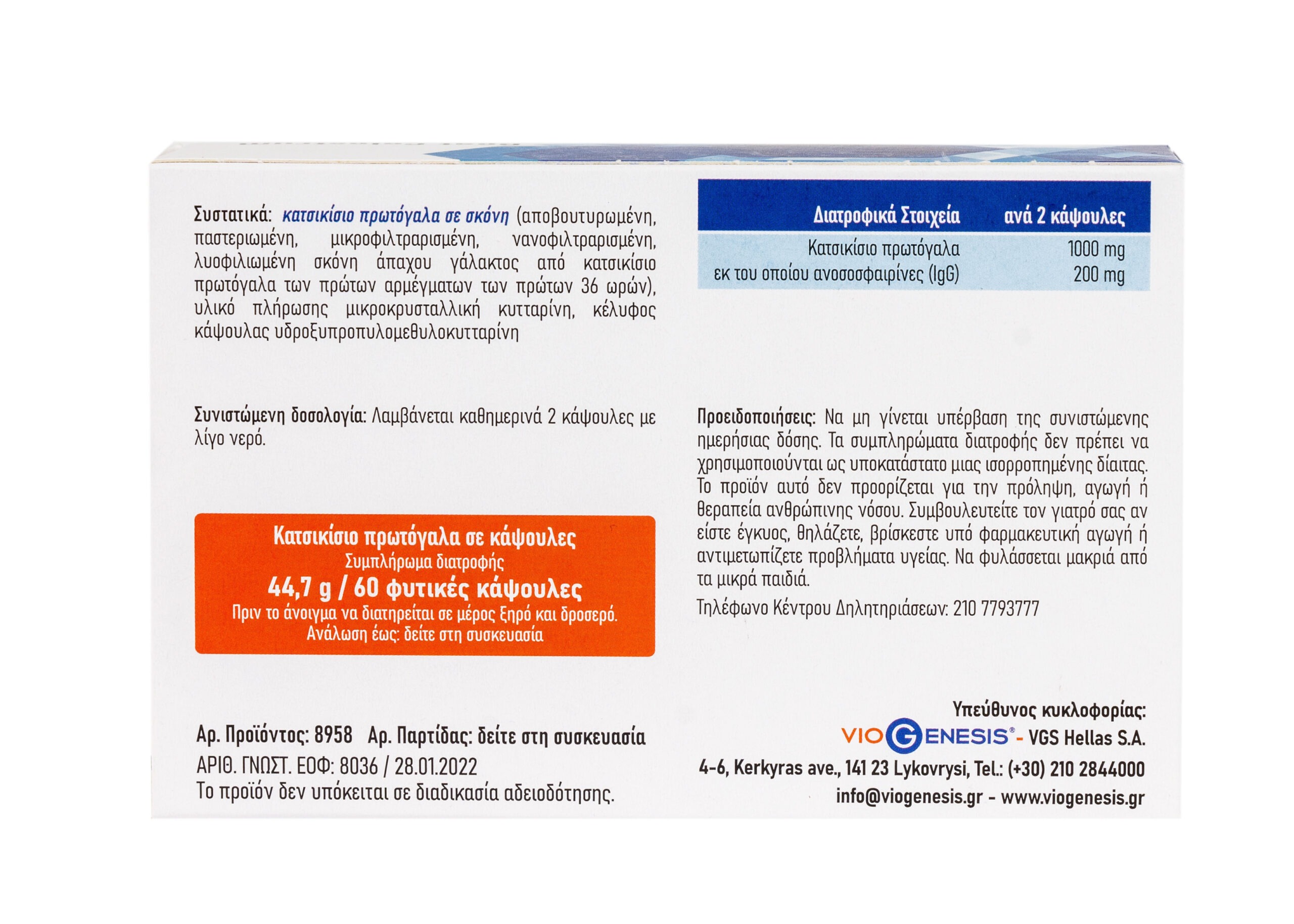 Συμπλήρωμα διατροφής με κατσικίσιο πρωτόγαλα για την ενίσχυση του ανοσοποιητικού σε κάψουλες.